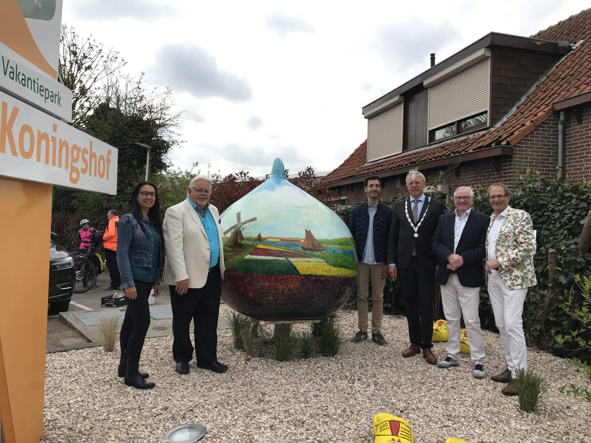 Donderdag is de Reuzenbol ‘Monet’ onthuld bij Vakantiepark Koningshof in Rijnsburg. De Reuzenbol is onthuld door burgemeester Cornelis Visser.