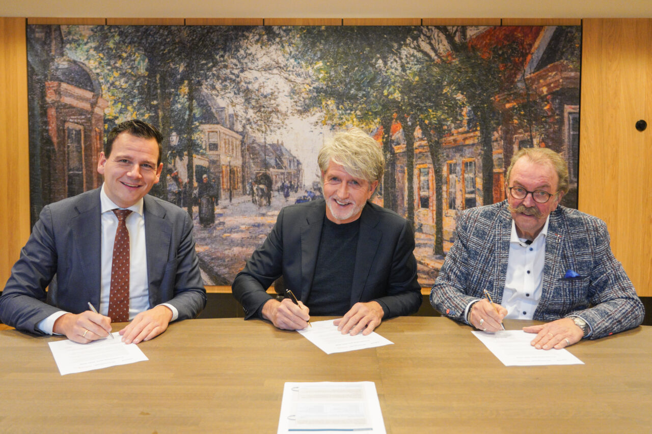 Foto: Gerard Mostert, Roland Marx en Peter Bekker ondertekenen de prestatieafspraken
