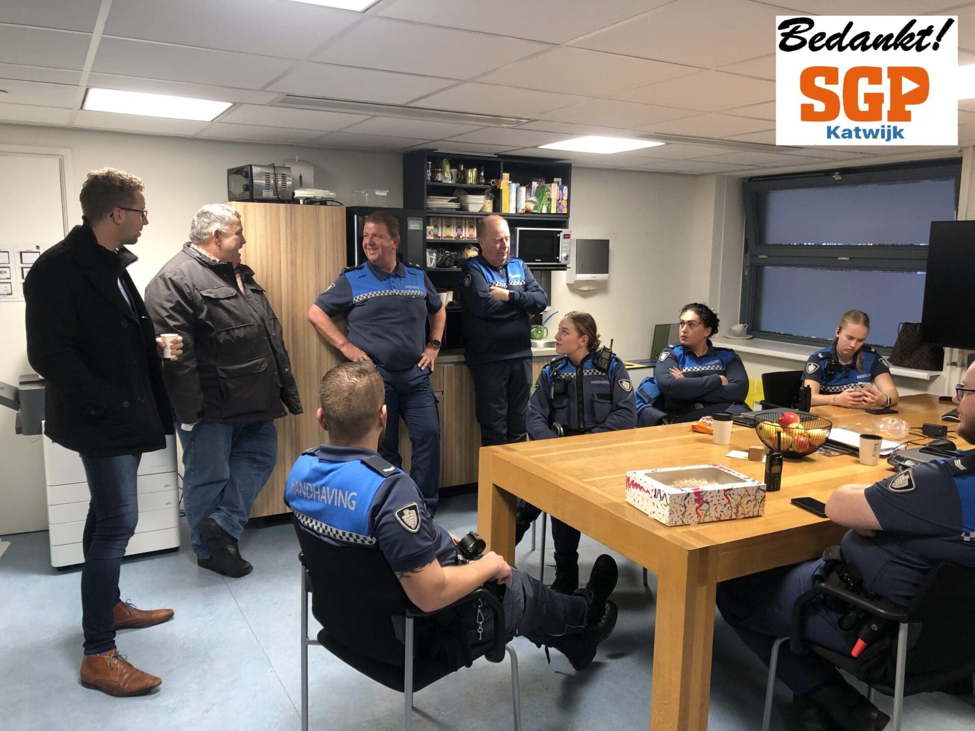Woensdagmiddag is de SGP-fractie langs geweest bij de Katwijkse BOA’s om hen te bedanken voor hun inzet de afgelopen jaarwisseling. Twee van hen hadden namelijk een heftig incident meegemaakt waarvan de impact nog steeds voelbaar was. Gelukkig was wel de indruk dat dit het enige vervelende incident was, want de rest van de dag is zonder noemenswaardige problemen verlopen. “We hebben juist veel leuke en gezellige gesprekken gevoerd”, aldus een van de BOA’s.