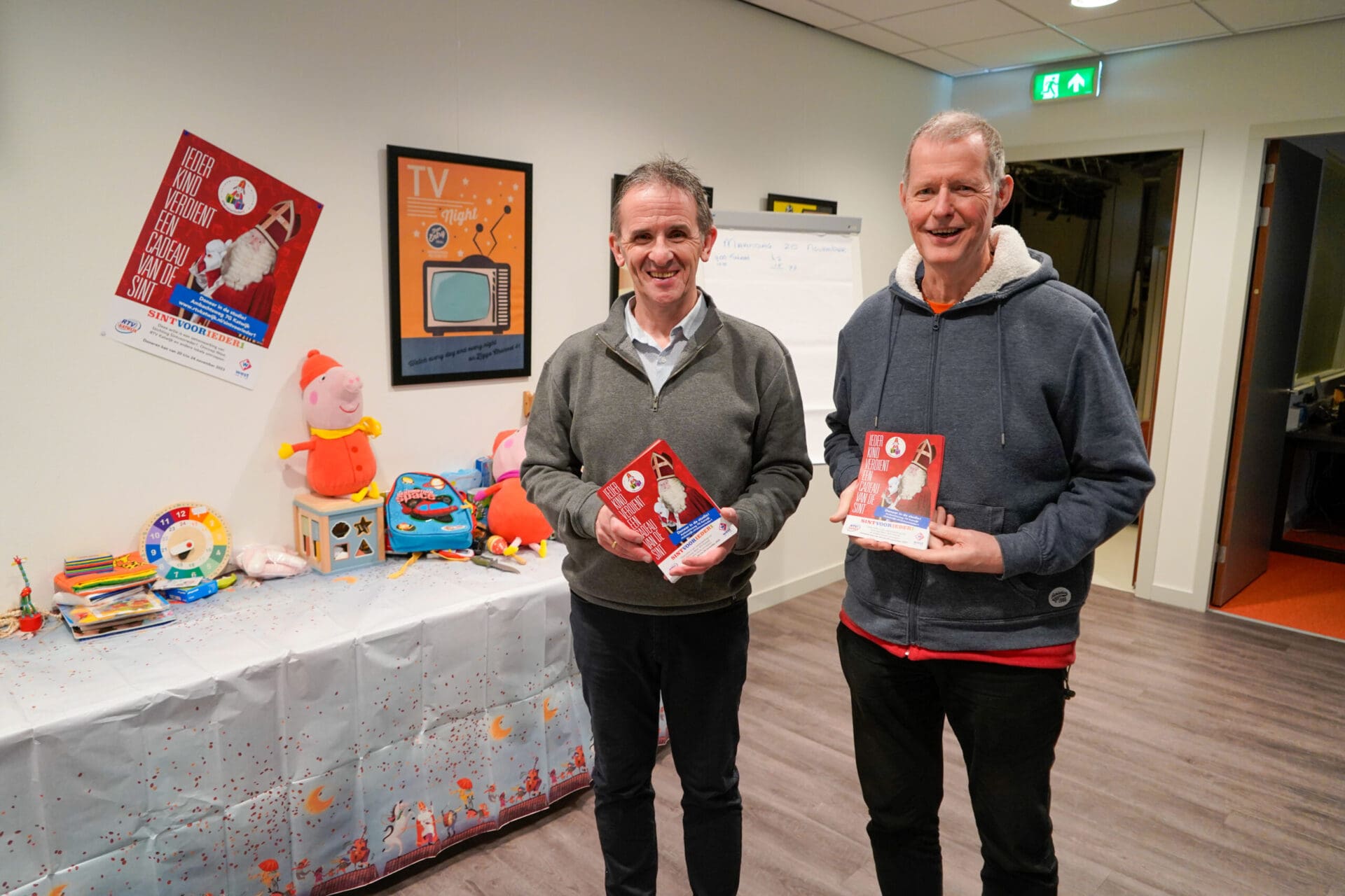 Peter Onderwater (redactie) en Jaap Schaap (bestuur) trapten maandagochtend de actie af. De eerste 77 cadeaus waren al snel binnen. Inleveren kan dagelijks tot en met vrijdag van 9.00 tot 18.00 uur.