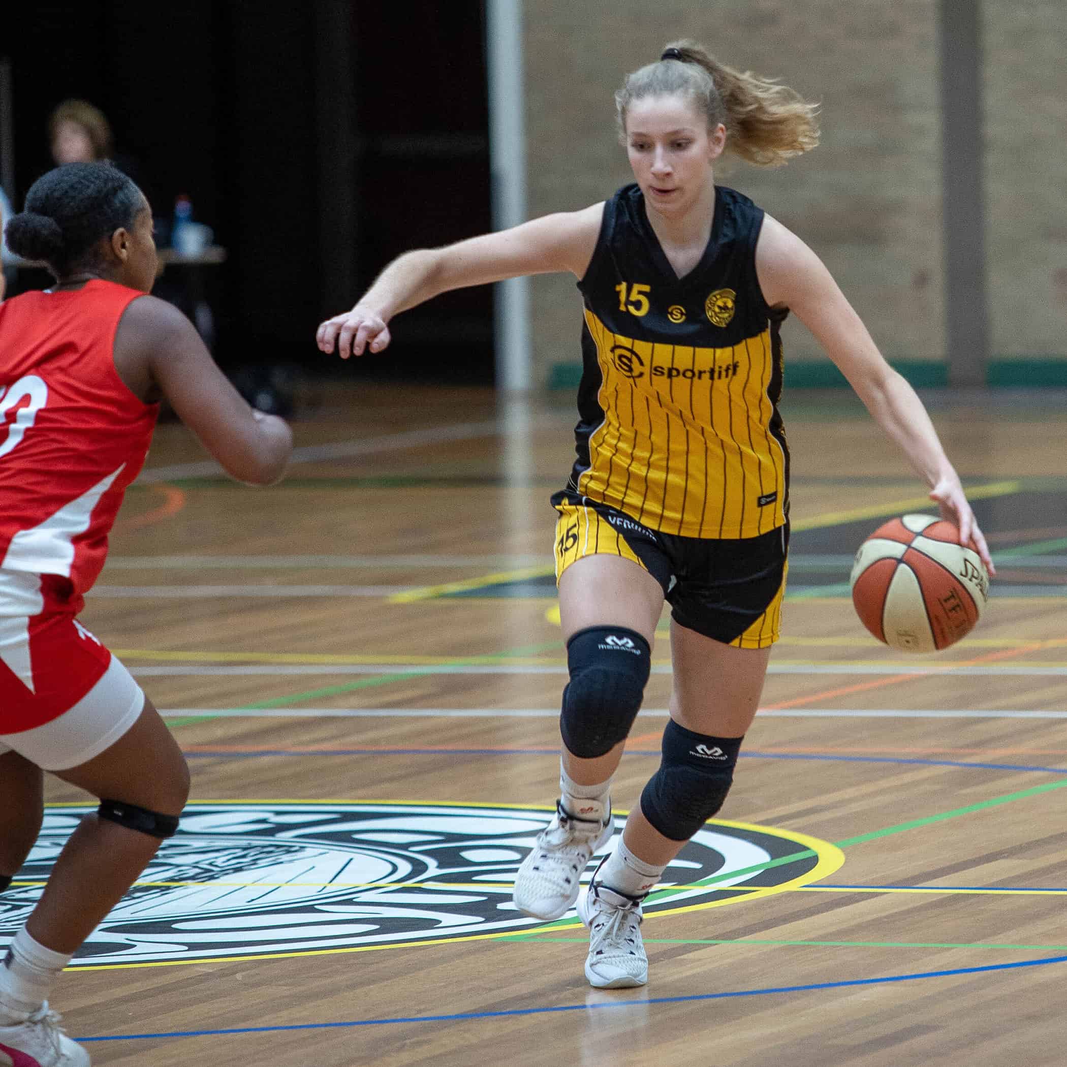 Scores: Lotte van Kruistum 15 (+ 11 reb.), Mia Hordijk 13, Alissa van der Plas 10 (+ 12 reb.), Karin Kuijt 10, Fleur Kuijt 9, Deborah Vos 8, Sonja Kuijt 5, Yara Paulides 5, Sofie Bekker 5, Ilja kromhout.