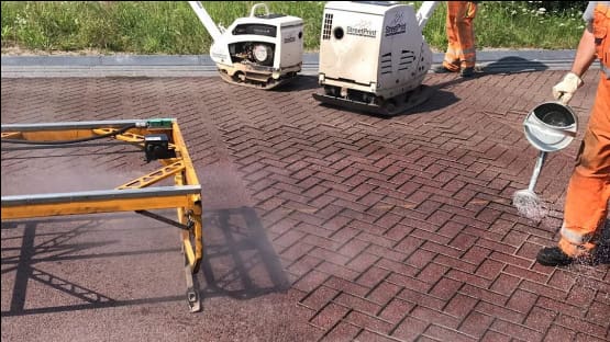 Met streetprint wordt er een straatsteen-profiel in het wegdek gefreesd zodat de kleur en aanzicht van de weg matcht met de rest van de Hoofdstraat.