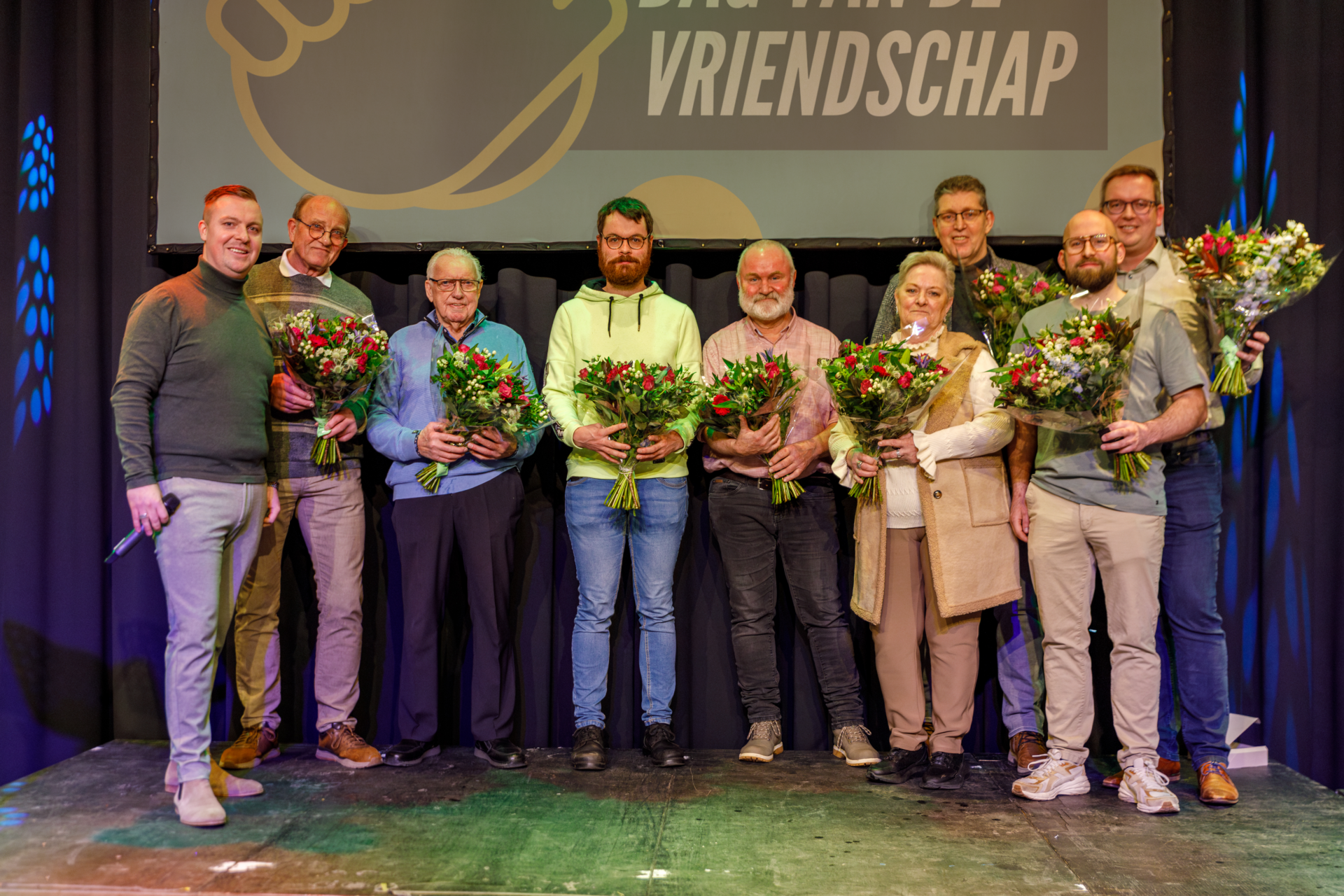 Tijdens de Dag van de Vriendschap werden negen jubilarissen gehuldigd. Helene de Jong, Jaap en Jaap Ouwehand zijn 12,5 jaar lid, Corné de Vogel, Thijs van Beelen en Kees van Duijn 25 jaar, Henk van Duijvenbode 40 jaar en Arie Haasnoot en Jan Verdoes zelfs 60 jaar. Beiden kregen een eerbetoon voor hun langdurige inzet.