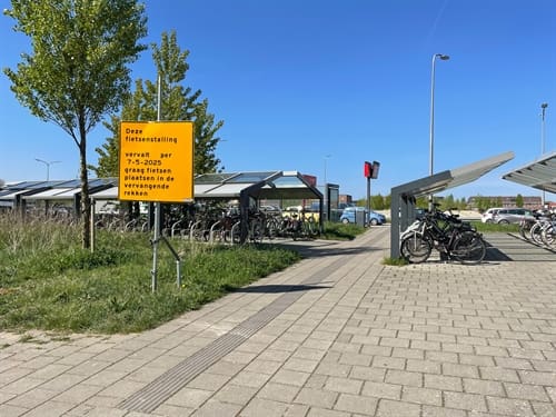 De tijdelijke fietsenrekken bij de fietsenstalling naast ’t Wachtje zijn in gebruik genomen. Dit betekent dat een ieder wordt verzocht zijn of haar fiets in deze fietsenrekken te plaatsen. De oude fietsenstalling wordt met bouwhekken afgezet.
