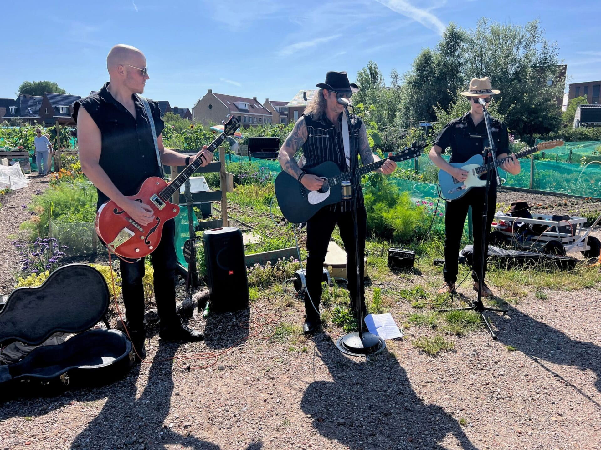 Onder de muzikale klanken van de ‘Johnny Ceesh band’ legden aanwezige deelnemers contacten, werden vele groenervaringen uitgewisseld en werd vol trots aan elkaar getoond hoe het eigen perceel was ingericht. Die trots was er bij het jongste schooltuinkind tot de oudste ‘krasse knarren’ die ook dagelijks in het groen genieten. Bol: ,,Als iedereen er is dan tellen we hier zo’n honderdvijftig à tweehonderd deelnemers, maar ze zien velen niet vaak daarom ook deze twee uurtjes van samenzijn. En dat wordt zeer gewaardeerd, zoals ik die bijna drie jaar de plezierige samenwerking met mensen van de gemeente Katwijk, Boskalis en de provincie Zuid-Holland enorm heb gewaardeerd. Daarom ook dit blijvende straatnaambord voor Joris Gouman van de provincie.”