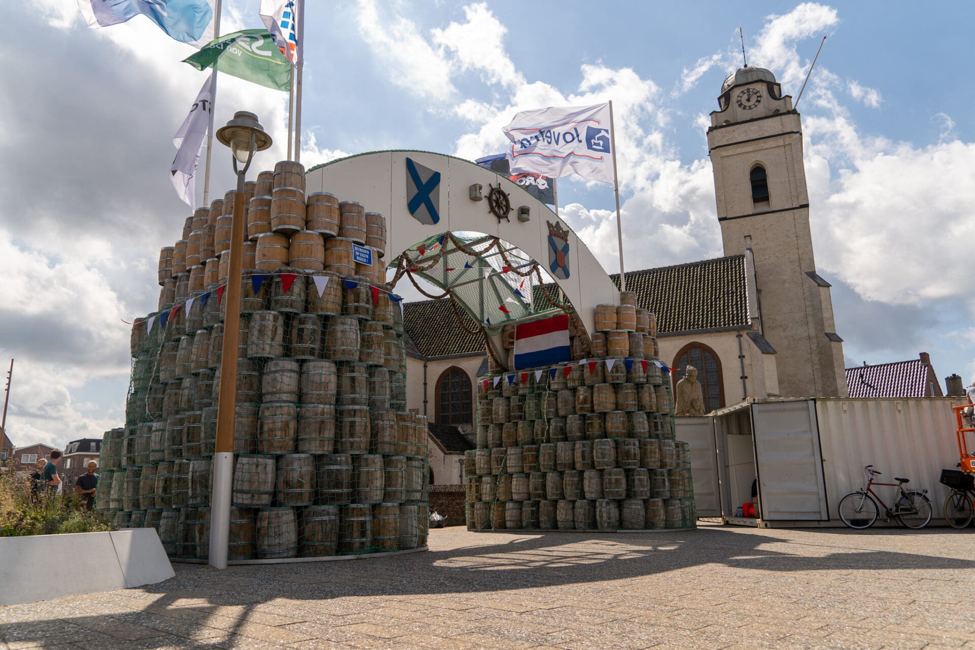 De ereboog bestaat uit een stalen constructie en meer dan honderd haringtonnetjes en is een eerbetoon aan de visserij. Jarenlang stond de poort aan het begin van de Princestraat. Volgens het bouwteam geen ideale plek, aangezien de poort niet volledig tot haar recht kwam door ruimtegebrek.