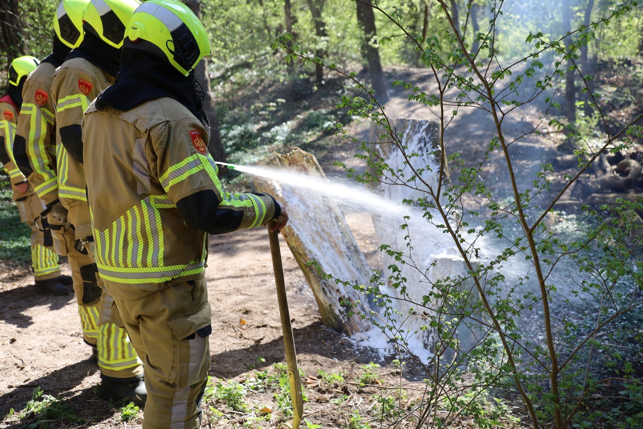 Vanwege de droogte kwam de Katwijkse brandweer met spoed ter plaatse. De brandweer heeft de boomstronk geblust.