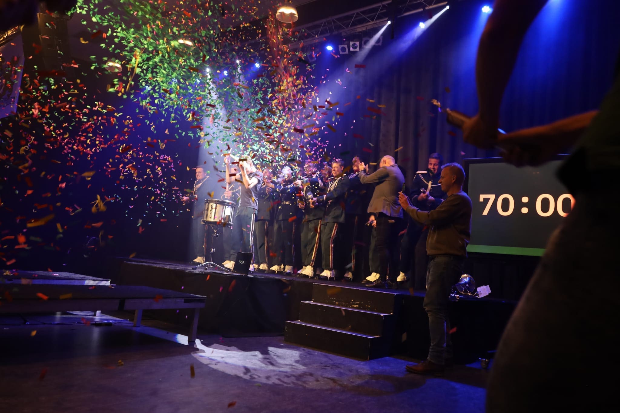 Muziekvereniging DVS heeft zaterdagavond om 19.53 uur het wereldrecord roffelen op haar naam gezet. Zeventig uur lang roffelde muzikanten onafgebroken. Woensdag werd gestart, zaterdag werd het record gevestigd.