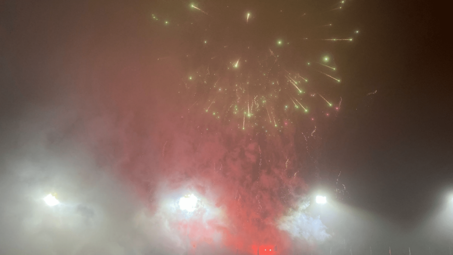 Het vuurwerk dat in de duinen werd afgestoken heeft niets met de sfeeractie voorafgaand aan de wedstrijd te maken. Die licht- en geluidshow op het veld werd gedaan door professionals.